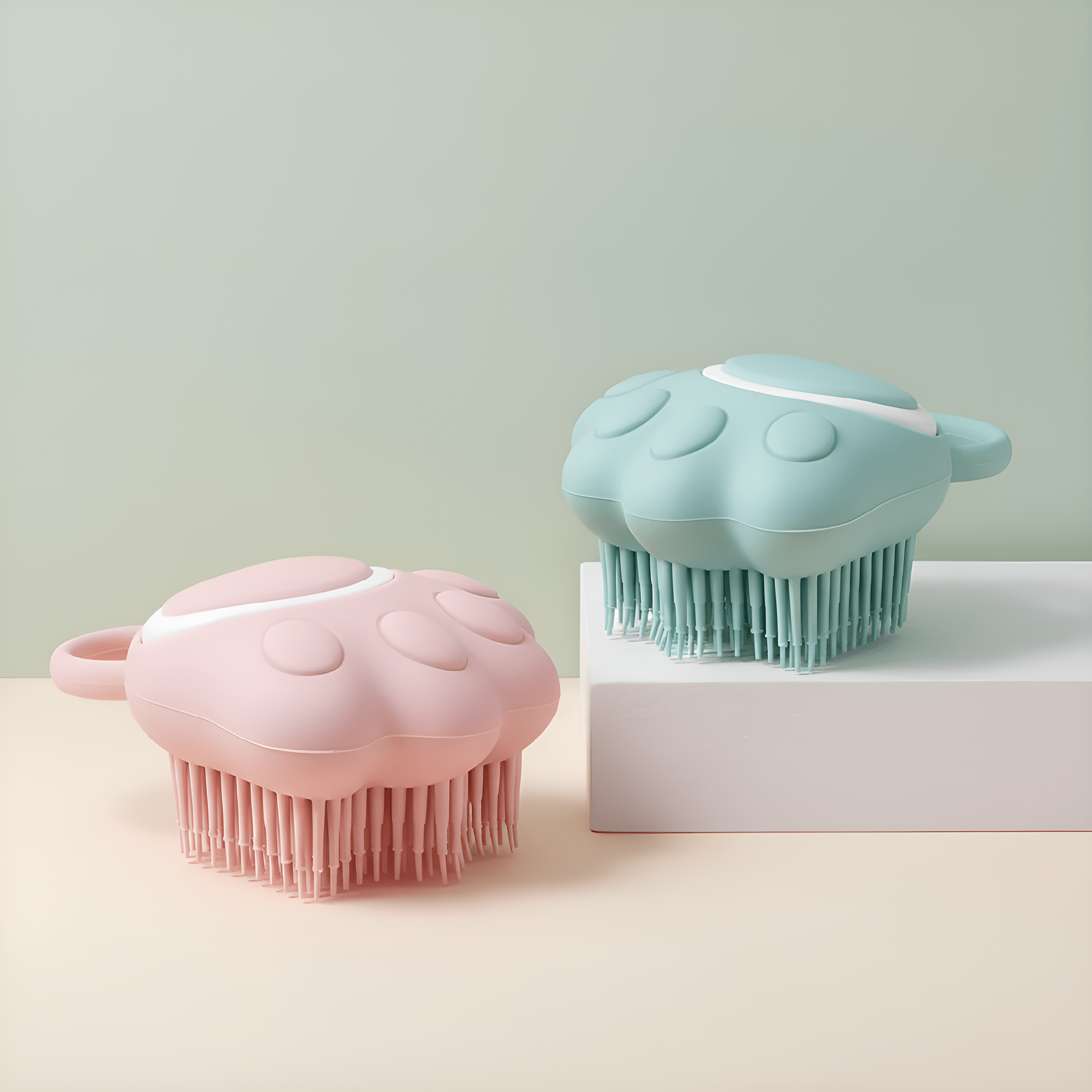 🧴 2-in-1 Smart Design — Brush and shampoo in one easy tool! Fill the built-in dispenser, press gently, and let the soft bristles do the rest.